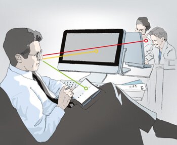 Umiejscowienie ekranu, klawiatury i dokumentów roboczych może stanowić dla wzroku spore wyzwanie. Aby móc skupiać wzrok na obiektach w różnych odległościach, użytkownik okularów jest zmuszony do przyjmowania nienaturalnej pozycji ciała i nienaturalnego ułożenia głowy. Może to prowadzić do różnych dolegliwości wynikających z nieprawidłowej postawy ciała.