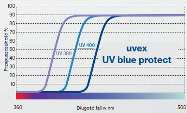- soczewki uvex UV blue protect podsycają kontrast oraz skutecznie zapobiegają oznakom zmęczenia i pojawiającemu się wraz z wiekiem zwyrodnieniu plamki żółtej (AMD)