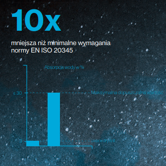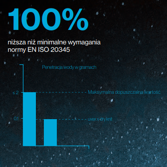 100% niższa penetracja wody niż minimalne wymagania normy EN ISO 20345