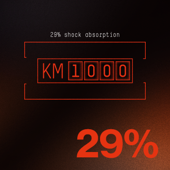 29% większa amortyzacja po przejściu 1000 km w porównaniu ze standardowymi podeszwami z poliuretanu