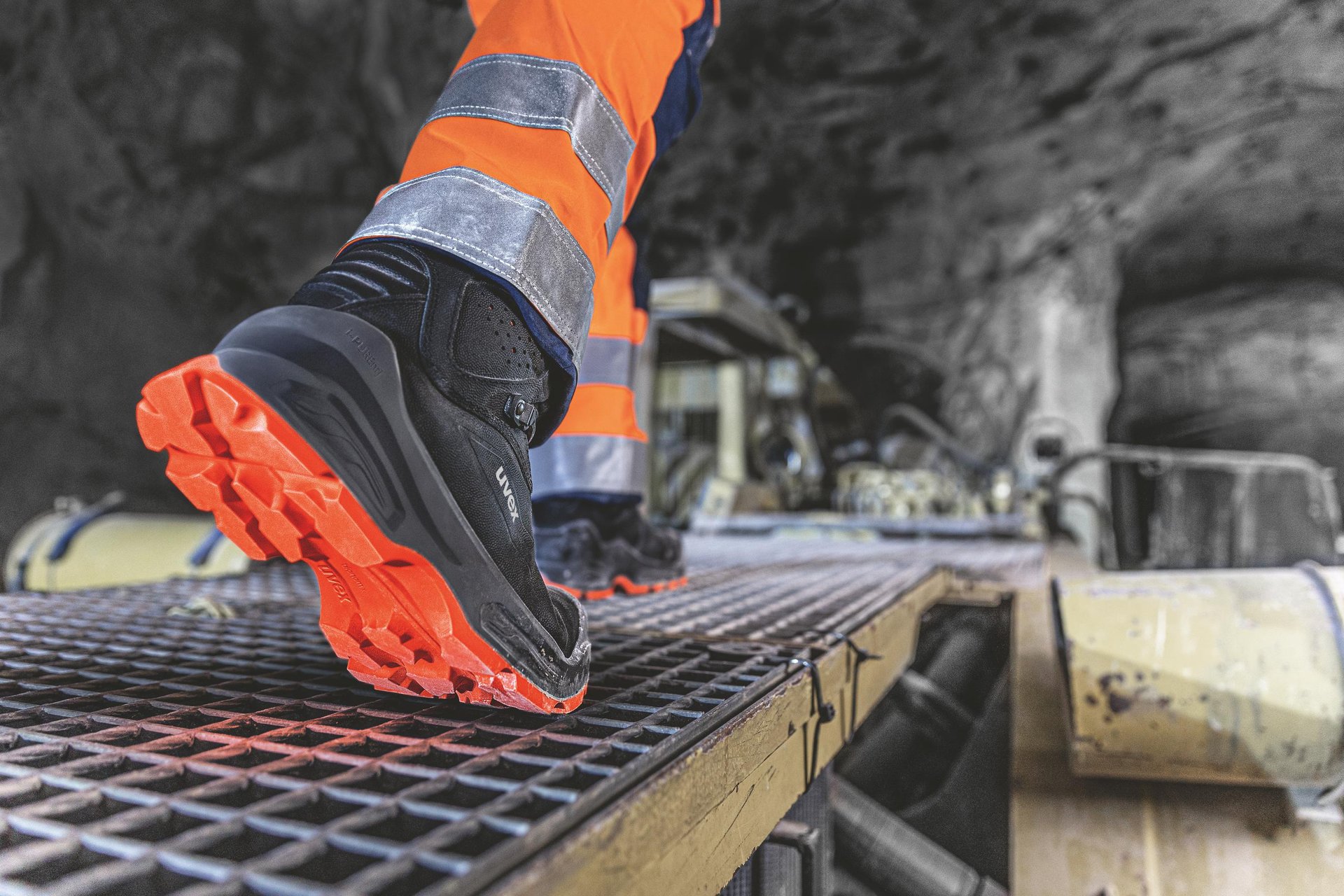 Obuwie uvex 2 posiada elastyczną podeszwę o wysokiej wrażliwości - szczególnie ważną podczas obsługi maszyn sterowanych stopą.