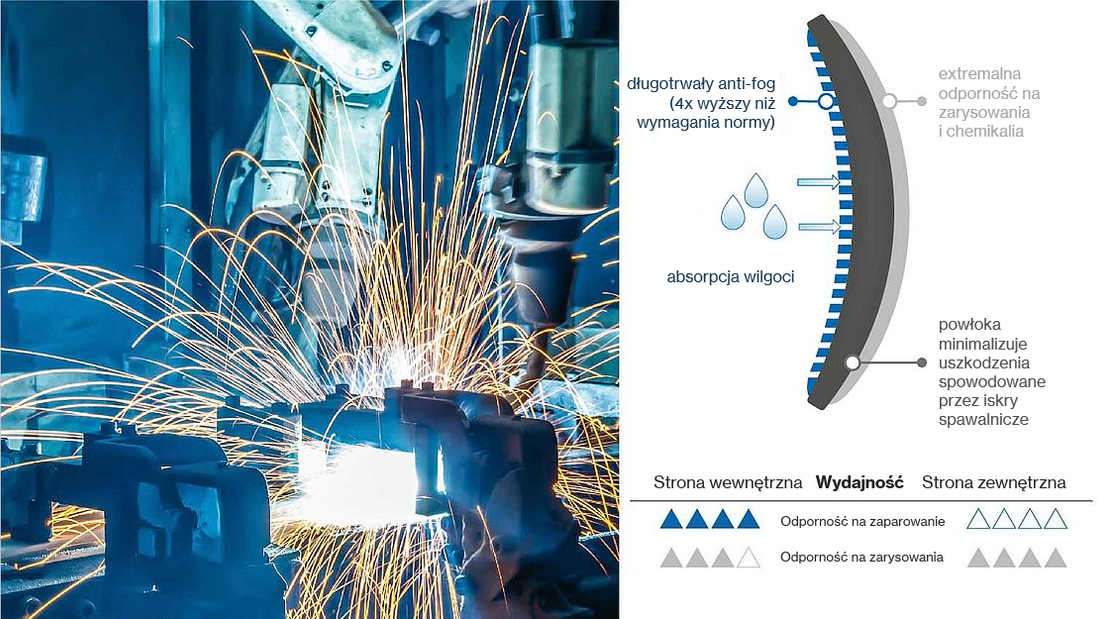 Specjalne warunki pracy wymagają również specjalnych powłok na soczewkach okularów ochronnych.
