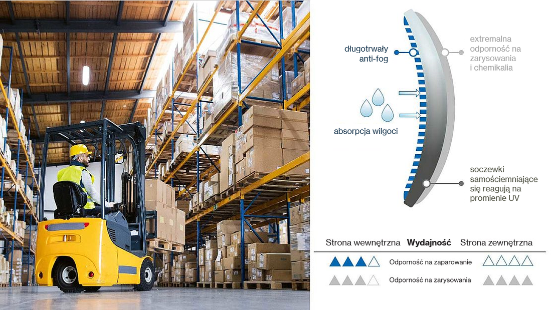 Zaparowane lub porysowane soczewki uniemożliwiają dobrą widoczność przez okulary ochronne. To może szybko stać się niebezpieczne i doprowadzić do wypadku. Film wyjaśnia, jak duży wpływ na komfort pracy, ma dobór odpowiedniej powłoki.
