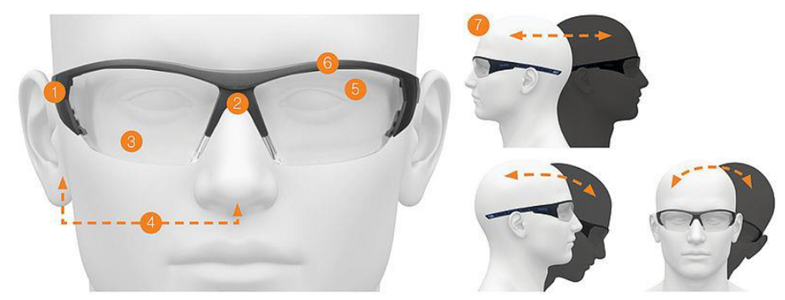 Aby ocenić, czy Twoje okulary ochronne są prawidłowo założone, zalecamy sprawdzenie poniższych 7 punktów: