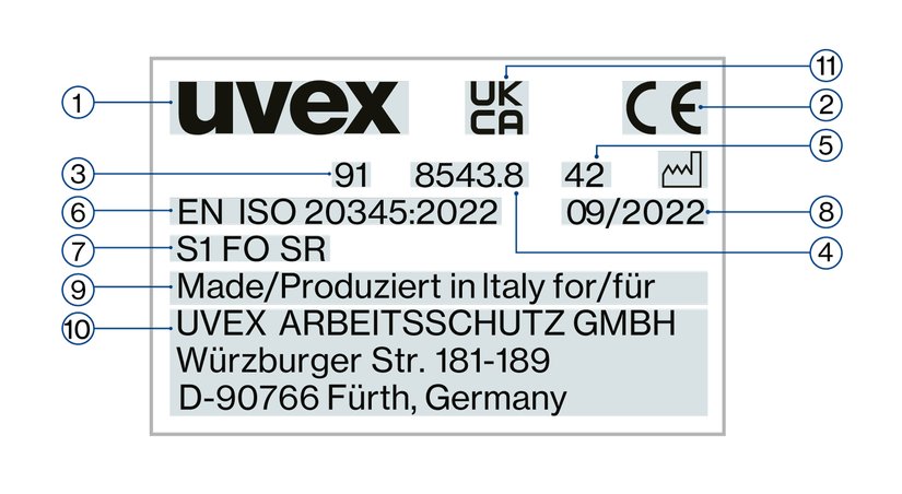 Etykieta na obuwiu zawiera następujące informacje: